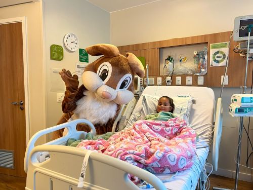 Coelhinho da Páscoa visita ala pediátrica do Hospital Unimed Ferj e leva alegria para crianças, pais e equipe assistencial